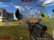 Снайперская винтовка – Используется для очень дальних дистанций. При включенном оптическом прицеле винтовка убивает крупных врагов с 2-3 выстрелов, при выключенном прицеле винтовка почти бесполезна.