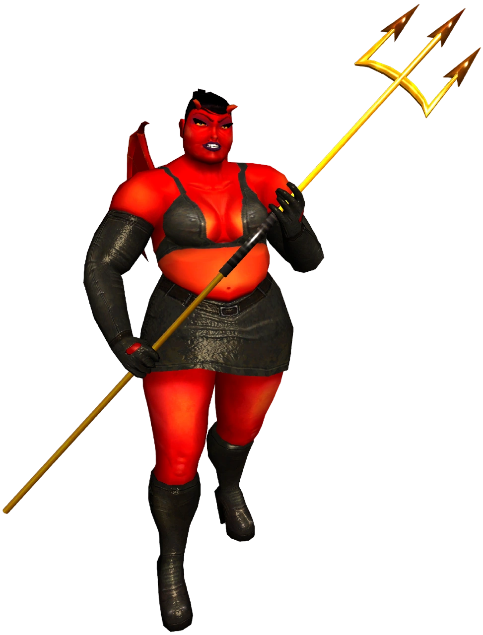 The HellChick has two attacks; firing a homing bat projectile at the player from medium to far range, or, if the player gets too close, she will attack the player with her trident.