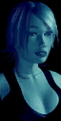 NETRICSA is portrayed as a blue hologram of a woman with short hair and wearing a tank top. She speaks with a British accent.