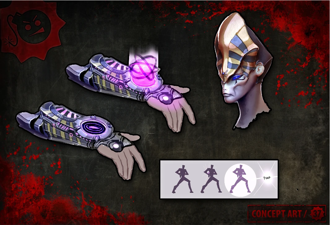 There is an early concept design of what appears to be a time-traveling gauntlet device, which is likely the Mutilator, although it could be that the Mutilator didn't exist in early design stages. Seeing the concept, the character in the sketch goes "poof" in the end, and combining it with the fact that there's a scrapped time-traveling feature (or "history switch" feature) found in the Serious Editor (at GlobalGameParameters.rsc), it could be very possible that the bracelet was going to be used as a time-traveling device.