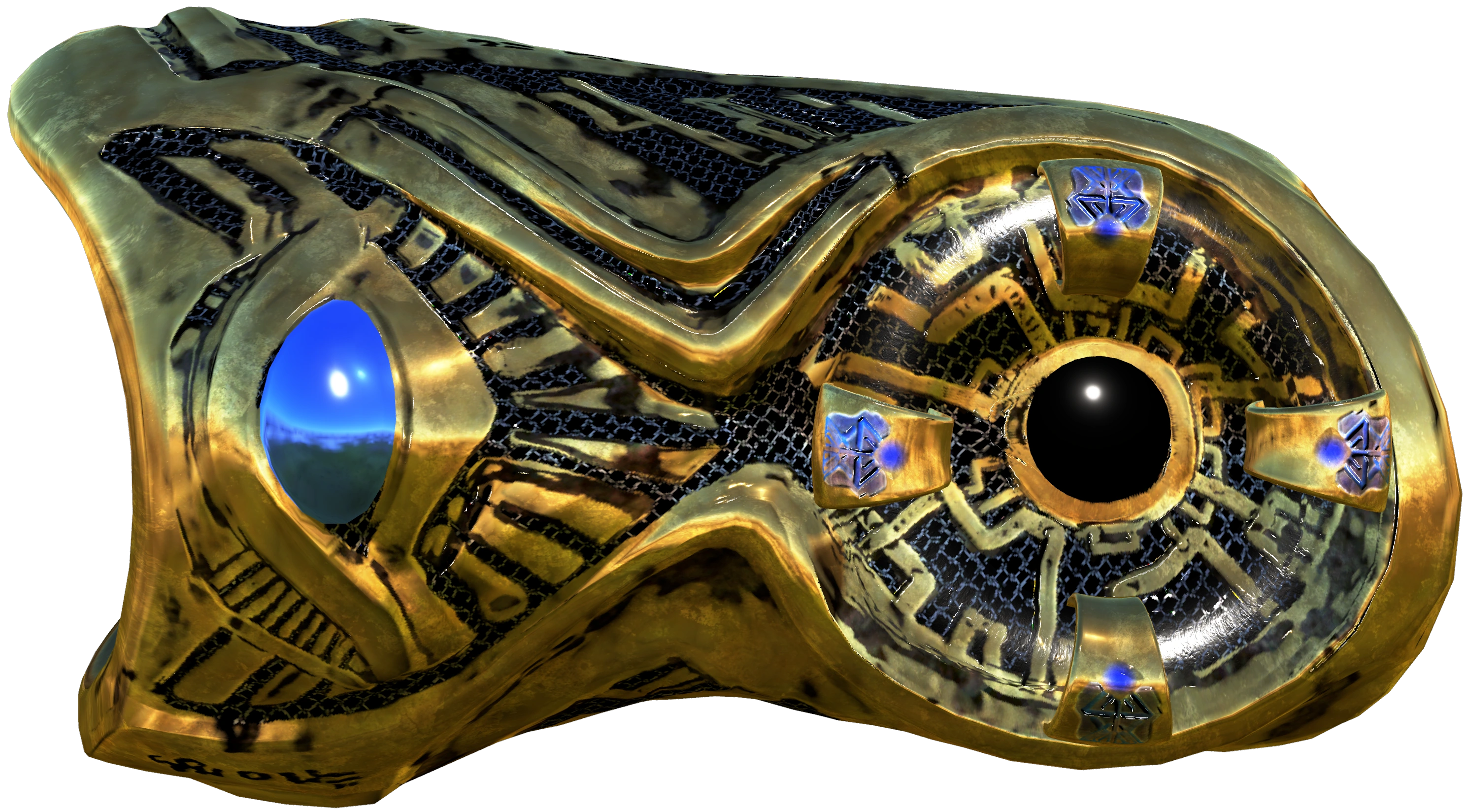 The Mutilator Bracelet is a strange and obscure device presumably to be of Sirian origin. Little information is known about the Mutilator, as NETRICSA can only analyze limited statistical data from the artifact.[1] The bracelet is made from some sort of gold or metallic texture with a black orb on it surrounded by four smaller blue orbs.