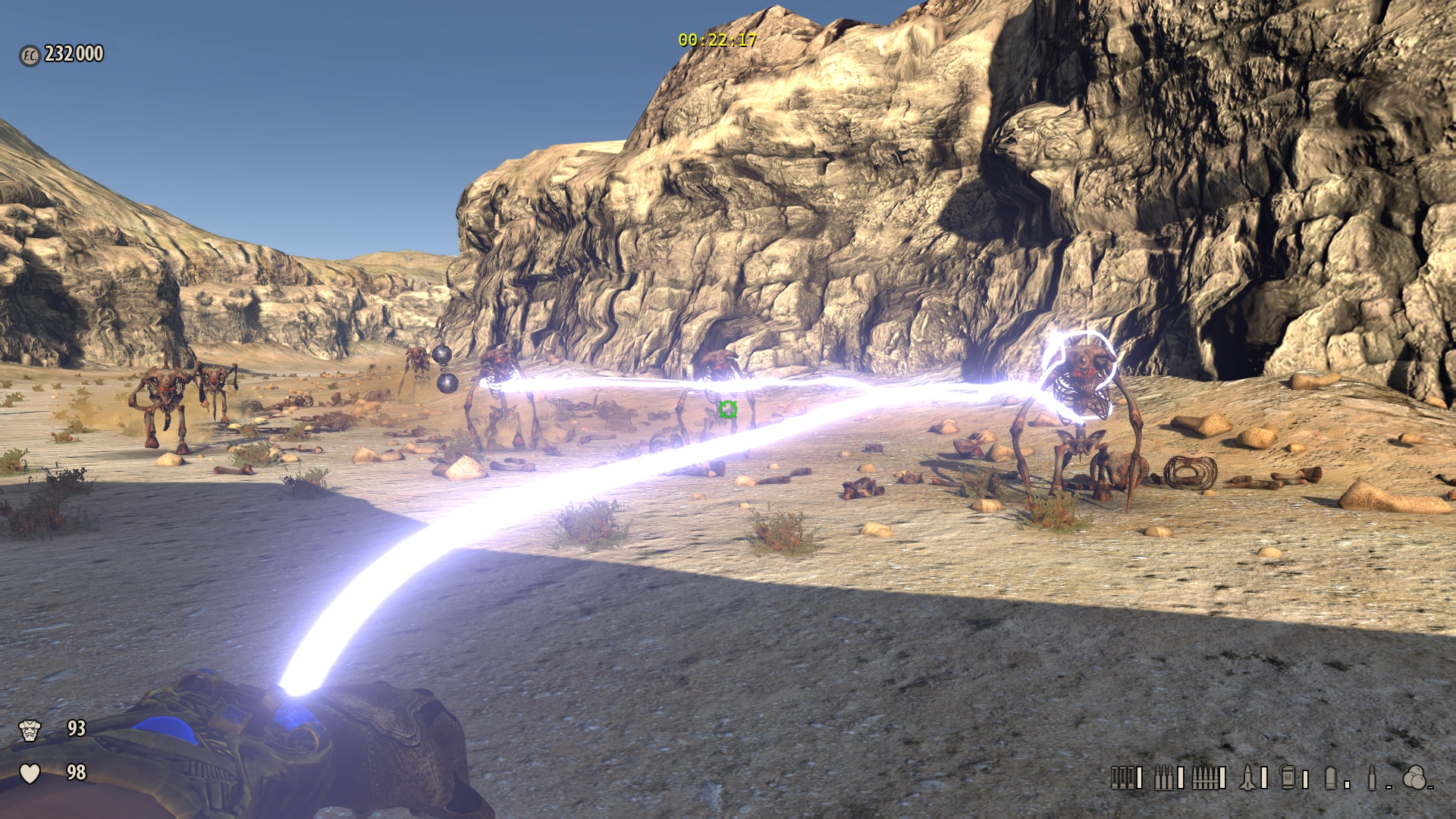 The player can still be easily overwhelmed despite being able to target small groups of enemies at a time with this weapon. Larger enemies such as Khnums, Major Bio-mechanoids, or Scrapjacks will actually pull the beam, thus bringing the player dangerously close to one.